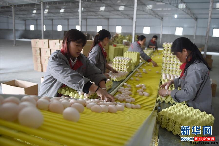 在貴州省畢節(jié)市七星關(guān)區(qū)五里坪村,當(dāng)?shù)剞r(nóng)戶在一個(gè)屬于精準(zhǔn)扶貧項(xiàng)目的養(yǎng)雞場(chǎng)內(nèi)分揀雞蛋(2015年11月15日攝)。畢節(jié)市自2014年開(kāi)始“私人訂制”式精準(zhǔn)扶貧工作,根據(jù)當(dāng)?shù)刎毨魧?shí)際情況為其制定扶貧方案,扶貧變“輸血”為“造血”。黨的十八大以來(lái),以習(xí)近平同志為總書(shū)記的黨中央高瞻遠(yuǎn)矚、深謀遠(yuǎn)慮,以高度的政治感、使命感和責(zé)任感,把扶貧開(kāi)發(fā)工作提升至治國(guó)理政新高度,廣泛凝聚社會(huì)各界力量,推進(jìn)實(shí)施精準(zhǔn)扶貧方略,為到2020年全面建成小康社會(huì)奠定堅(jiān)實(shí)基礎(chǔ)。按照中央部署,通過(guò)產(chǎn)業(yè)扶持、轉(zhuǎn)移就業(yè)、易地搬遷、政策兜底等方式,到2020年將實(shí)現(xiàn)7017萬(wàn)農(nóng)村貧困人口脫貧目標(biāo)。新華社記者 潘昱龍 攝