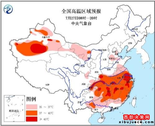 26日18時(shí),中央氣象臺(tái)繼續(xù)發(fā)布高溫橙色預(yù)警。預(yù)計(jì)27日白天,華南北部、江南、江淮、江漢、黃淮南部、華北南部、四川盆地東部、重慶、貴州北部和東部以及新疆、甘肅西北部、內(nèi)蒙古西部等地有35~39℃的高溫天氣。