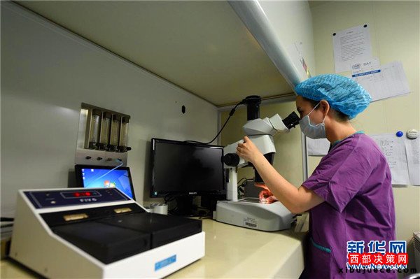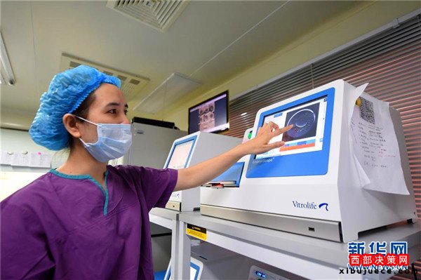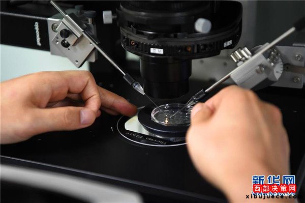 重慶市遺傳與生殖研究所實驗室工作人員在顯微鏡下對胚胎進(jìn)行操作