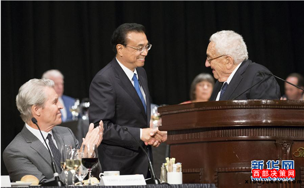 李克強(qiáng)表示,基辛格博士45年前訪華時(shí),中美貿(mào)易幾乎為零。45年后的今天,中美貿(mào)易額占全世界貿(mào)易總量的五分之一,中美經(jīng)濟(jì)總量之和占世界經(jīng)濟(jì)總量的三分之一。我們的貿(mào)易和投資量如此之大,自然難免有分歧摩擦,但我們之間的共同利益遠(yuǎn)大于誤解和分歧。我們正在進(jìn)行的雙邊投資協(xié)定談判就是向兩國(guó)工商界發(fā)出中美進(jìn)一步擴(kuò)大相互開放和投資的積極信號(hào)。希望美方采取務(wù)實(shí)靈活態(tài)度,與中方共同努力達(dá)成高水平、互利共贏的雙邊投資協(xié)定。兩國(guó)可以通過(guò)更多貿(mào)易與人員往來(lái),坦誠(chéng)溝通,增進(jìn)理解與互信,推動(dòng)中美關(guān)系朝著穩(wěn)定向好的方向繼續(xù)前行。