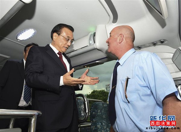 當?shù)貢r間9月25日下午,國務(wù)院總理李克強在古巴首都哈瓦那體驗中國出口的宇通客車,考察中國裝備“走出去”情況。
