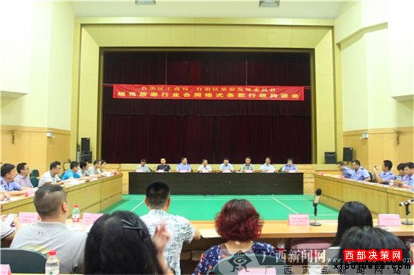為進(jìn)一步依法維護(hù)旅游經(jīng)營企業(yè)及旅游消費(fèi)者合法權(quán)益,積極發(fā)揮部門間的監(jiān)管合力,提高旅游市場監(jiān)管效能,提升企業(yè)誠信守法意識,維護(hù)良好的旅游市場秩序,促進(jìn)廣西旅游產(chǎn)業(yè)健康發(fā)展,9月28日,規(guī)范旅游行業(yè)合同格式條款行政約談會在南寧召開。