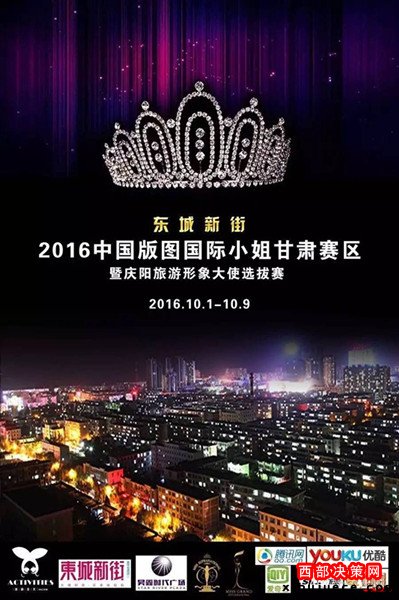 本次大賽的口號是“禮行天下,放飛夢想”,活動由隴東報社、慶陽市旅游局、慶陽市文化旅游投資集團(tuán)有限公司主辦,得到甘肅日報、隴東報、慶陽電視臺、慶陽人民廣播電臺、掌中慶陽等媒體的鼎力支持。大賽獎項由2016中國版圖國際小姐甘肅賽區(qū)冠軍、亞軍、季軍各1名,“2016慶陽旅游形象大使”稱號,“東城新街”形象大使,以及最佳上鏡獎、最佳才藝獎、最佳人氣獎、最具潛力獎、最佳儀態(tài)獎5個單項獎組成。通過自主報名、層層把關(guān)、嚴(yán)格篩選的晉級選手,不僅符合參賽選手的基本要求,更代表了慶陽旅游事業(yè)蒸蒸日上的發(fā)展格局。
