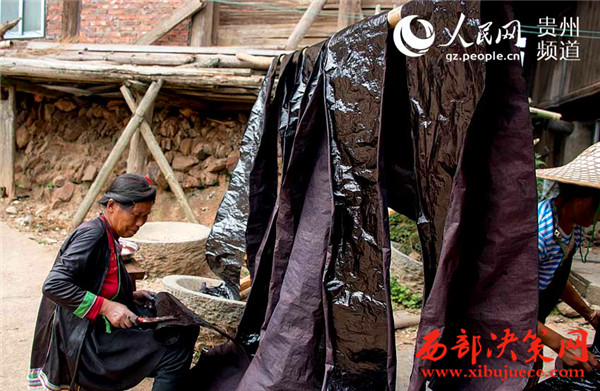 獨特文化:苗族婦女制“亮布”涂上蛋清做新衣