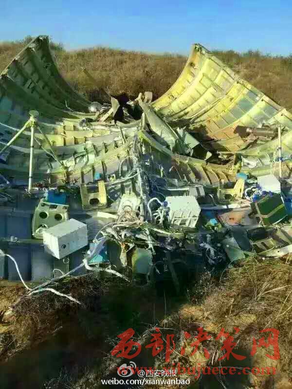 神舟十一號(hào)載人飛船在今天(17日)在酒泉衛(wèi)星發(fā)射中心,由長(zhǎng)征二號(hào)F遙十一運(yùn)載火箭搭載兩名航天員發(fā)射升空,發(fā)射取得圓滿成功,其分離的整流罩在榆林市榆陽(yáng)區(qū)大河塔鎮(zhèn)云化綠能廠區(qū)東南方向找到。