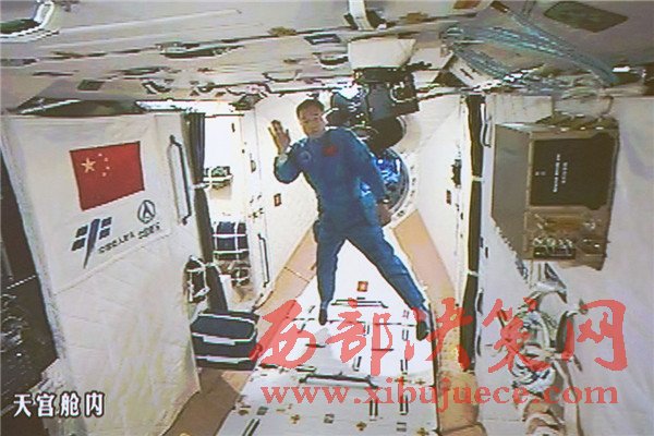 10月19日,神舟十一號(hào)航天員景海鵬和陳冬順利進(jìn)入天宮二號(hào)實(shí)驗(yàn)艙。景海鵬(左)和陳冬在天宮二號(hào)實(shí)驗(yàn)艙向全國(guó)人民問好并敬禮(攝于北京航天飛行控制中心大屏幕)。