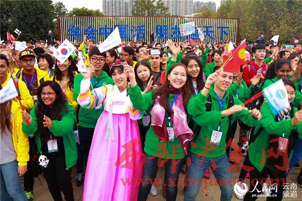 10月18日,在來自世界各地中學(xué)生們的吶喊聲和歡呼聲中,以“學(xué)會中國話,朋友遍天下”為主題的第九屆“漢語橋”世界中學(xué)生中文比賽在云南師范大學(xué)啟幕。