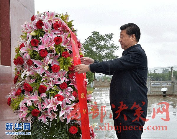 2016年7月18日至20日,中共中央總書記、國(guó)家主席、中央軍委主席習(xí)近平在寧夏調(diào)研考察。這是7月18日上午,習(xí)近平在固原市西吉縣將臺(tái)堡向紅軍長(zhǎng)征會(huì)師紀(jì)念碑敬獻(xiàn)花籃。新華社記者李濤攝
