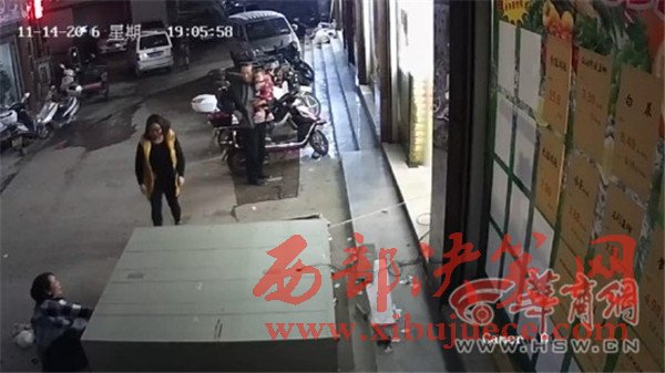 胡先生調(diào)取了事發(fā)時超市監(jiān)控視頻,華商報記者在視頻里看到:11月14日19時05分,一名婦女帶著小男孩走出超市,來到超市門口擺放的儲物柜取物。就在這名婦女剛拿出物品的一剎那,近兩米高的儲物柜突然倒下砸中兩人。巨大的儲物柜將孩子整個壓在了下面,婦女雙腿被壓住。周圍群眾幫助抬起了儲物柜。華商報記者注意到,從婦女取物到柜子倒下,事發(fā)經(jīng)過不到十秒鐘。