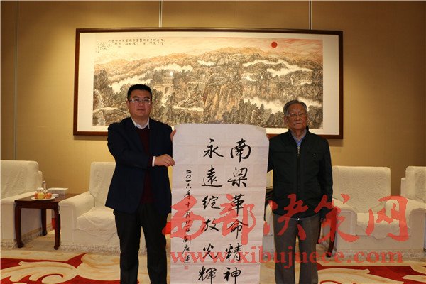 西部決策網(wǎng)訊(帥華鋒 杜杰 通訊員 趙高銪)11月21日,原全國政協(xié)常委、國家林業(yè)部常務(wù)副部長劉廣運,國家林業(yè)局老干局副局長、中國林業(yè)書法家協(xié)會副秘書長王德宗,人民日報海外版書畫藝術(shù)部主任助理、人民書畫藝術(shù)網(wǎng)外聯(lián)部副主任陳厚學(xué)一行,在慶陽市林業(yè)局、華池縣人民政府副縣長池軍以及南梁紅色景區(qū)建設(shè)管理局辦公室主任張全鈺、南梁革命紀(jì)念館館長聶明靜的親切陪同下,踏上陜甘邊革命根據(jù)地“紅色南梁”這片革命的熱土。