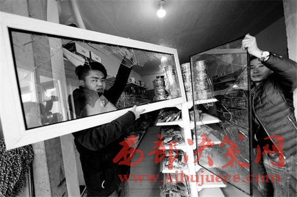 令趙女士沒想到的是,27日下午5點(diǎn)多,這群人又出現(xiàn)了。當(dāng)時(shí)趙女士的兒子田江正在里屋吃飯,外面的防盜門虛掩著,突然七八個(gè)男子帶著洋鎬把就沖了進(jìn)來,沖著貨架一通亂砸。田江說:“我聽見響動(dòng)掀開門簾出來,都是蒙面的小伙,我聽清楚了對方的一句話‘還敢開還砸!’,我當(dāng)時(shí)看著對方人多,沒敢追。”目前,趙女士一家已經(jīng)報(bào)警,韋曲派出所正對此事做進(jìn)一步調(diào)查。