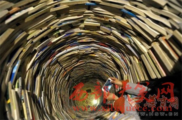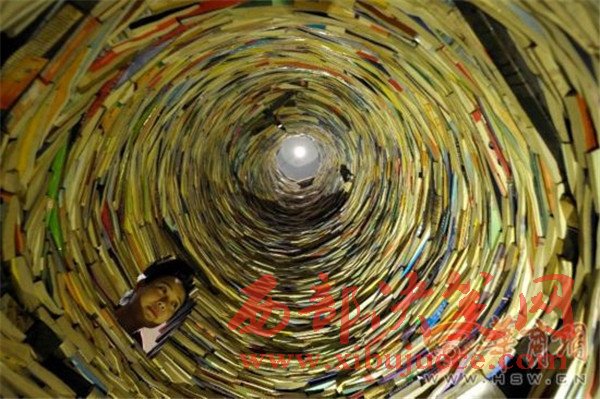 原標(biāo)題:震撼!西安陪讀媽媽用4噸教輔書壘出7.5米高"書井"