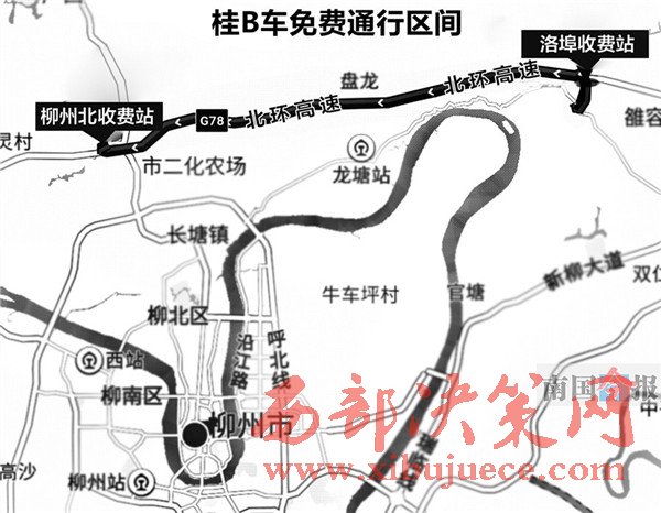 今日零時起桂B(yǎng)車可免費(fèi)通行北環(huán)高速柳州北至洛埠區(qū)間,此舉開廣西先河
