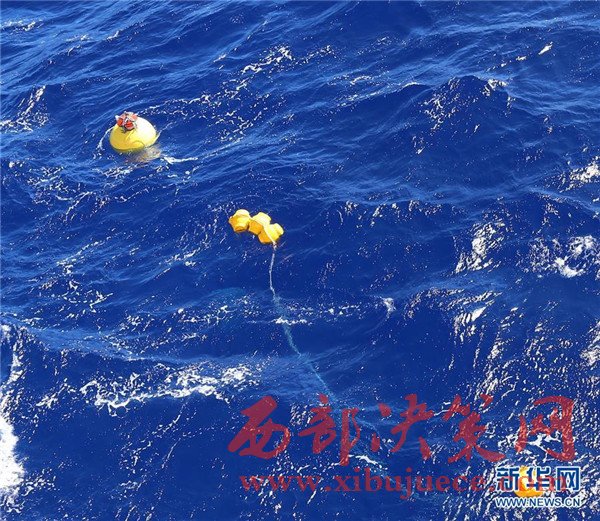 在深海潛標(biāo)回收作業(yè)中,潛標(biāo)主浮體和玻璃浮球浮出水面(11月18日攝)。我國遠(yuǎn)洋綜合考察船“科學(xué)”號正在西太平洋執(zhí)行潛標(biāo)觀測網(wǎng)維護(hù)與升級任務(wù)。截至目前,科考隊員已獲取了140余件觀測設(shè)備連續(xù)1年的現(xiàn)場數(shù)據(jù),維護(hù)了8套深海潛標(biāo),并重新布放至西太平洋海域。