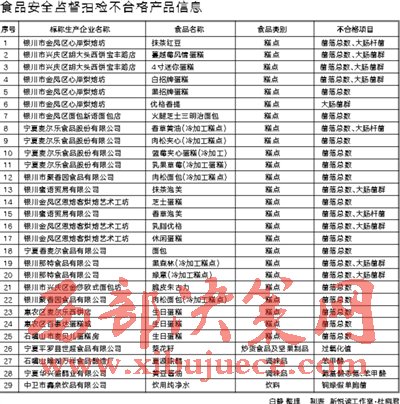 記者12月13日獲悉,寧夏回族自治區(qū)食品藥品監(jiān)督管理局日前再公布277批次生產(chǎn)環(huán)節(jié)食品監(jiān)督抽檢結(jié)果,其中合格248批次,不合格29批次,抽樣不合格最多的是糕點。