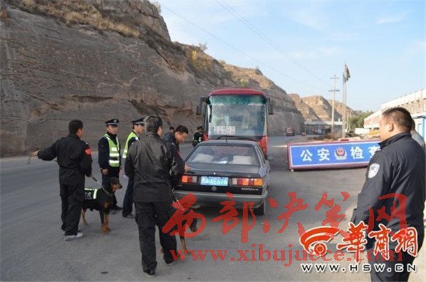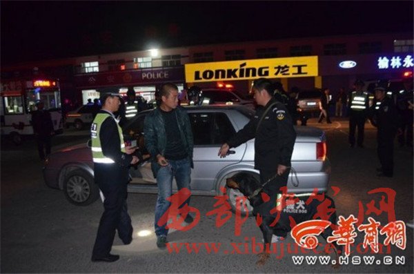 府谷縣公安局警犬訓(xùn)導(dǎo)隊(duì)帶領(lǐng)警犬上街巡邏