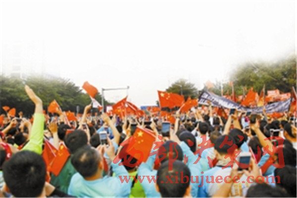 深馬參賽者揮舞國旗。