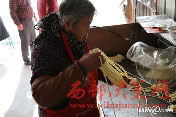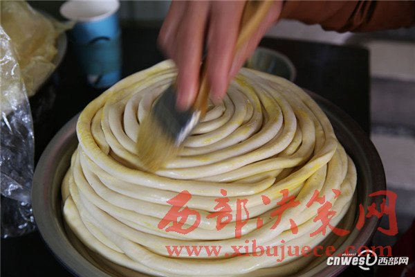 問(wèn)賀玉蘭老人做得一碗好面有啥竅門(mén),賀玉蘭老人說(shuō):“有啥竅門(mén)?實(shí)實(shí)在在做就成,一個(gè)是面要揉好、揉成光光亮亮的軟面團(tuán),揉好的面醒2個(gè)小時(shí)后就可以搓成粗條子盤(pán)放在盆子里,一層層碼放,刷上菜籽油,一個(gè)是防止面粘在一起,另外也能使面口感更爽滑,盤(pán)放好后再醒2個(gè)小時(shí)。”