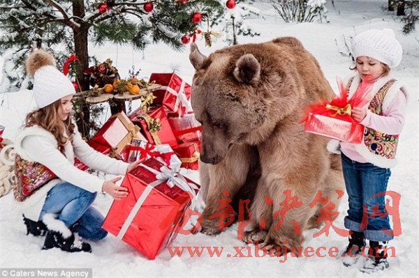 據(jù)英國(guó)《每日郵報(bào)》12月22日?qǐng)?bào)道,近日,網(wǎng)上流傳的一些父母讓孩子與灰熊一起拍攝圣誕節(jié)照片的圖片引起了網(wǎng)友們的關(guān)注,據(jù)了解,照片中的兩個(gè)小姑娘名為Alice和Eve,這兩個(gè)可愛的小家伙今年都不到10歲,但是照片中勇敢的她們卻滿心歡喜地和灰熊擁抱拍照。