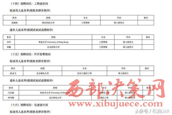 12月26日,中石化在其人才招聘網(http://job.sinopec.com/index.aspx),公布了“中國石化2017年度畢業(yè)生招聘”的擬錄用人選和遞補人選的公示,工程建設公司是這次中石化旗下121家招聘單位里公示的第一家。