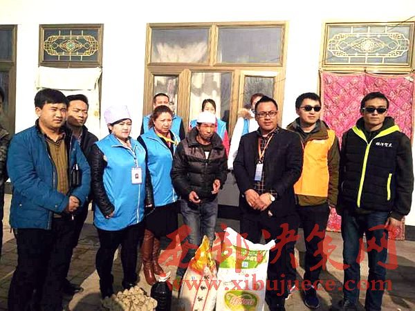 1月13日,寧夏海興義工聯(lián)合會銀川辦事處的工作人員來到銀川市賀蘭縣南梁臺子鐵東村、鐵西村,慰問當?shù)?戶孤寡貧困家庭,捐贈米面油和棉衣等生活物品,  “大娘,還有半個月就過年了,這是咱們企業(yè)的一點心意,祝您老身體健康,吉祥如意”。這次慰問空巢老人和貧困家庭的單位有:銀川培訓學院、銀川美年大健康體檢醫(yī)院、海原馬軍飯莊、搏港旅游公司、寧夏雙玉農(nóng)業(yè)科技有限公司、寧夏塞杞源苗木專業(yè)合作社。今年年初,他們根據(jù)南梁臺子鄉(xiāng)提供的貧困戶名單,結合入戶走訪,最終確定了馬寶林、馬萍霞等8戶殘疾、孤寡貧困家庭。由寧夏蕊杰伯港旅游有限公司、 銀川美年大健康體檢醫(yī)院等7家協(xié)會成員企業(yè)共同出資購買生活物品,逐戶慰問,反哺社會。