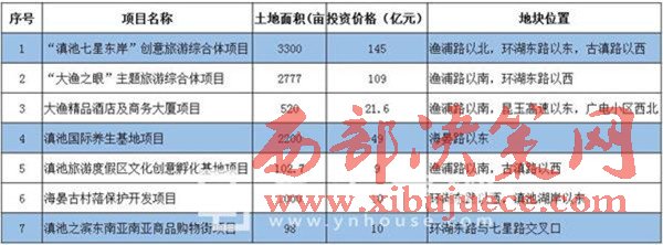 資料顯示,大漁片區(qū)位于滇池東岸,面積25平方公里,約37500畝。根據(jù)昆明滇池旅游度假區(qū)信息,大漁片區(qū)2016年共7個項目統(tǒng)一招商,總占地面積9997.7畝,總投資額預計約353.6億元。意味著本次大批量招商項目供地所占土地比例幾近于大漁片區(qū)總面積的三分之一,如此大規(guī)模的土地供應量和投資額,如果最終招商仍然無果,那么大漁片區(qū)大量土地“待嫁”的現(xiàn)狀暫時難以改變。