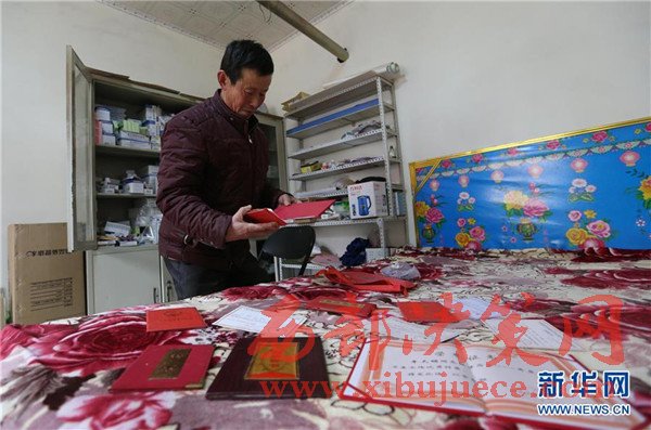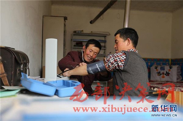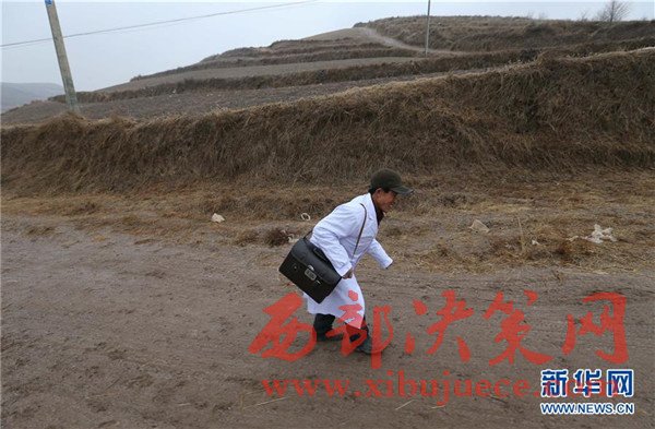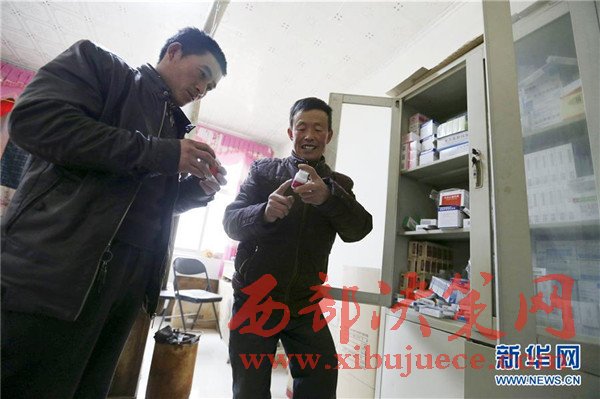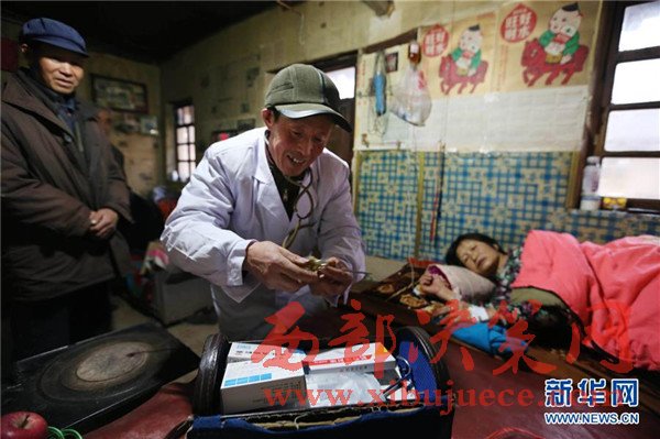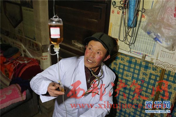 村醫(yī)牟天明在村民家中為患者診療(2月6日攝)。大年初十,在寧夏固原市西吉縣新營鄉(xiāng)二府營村泥濘的村道上,身高不足一米六的村醫(yī)牟天明背著醫(yī)療箱,一瘸一拐地前往離家5公里的患病村民家中。春節(jié)以來,這已是他第18次出診。年近六旬的牟天明在上小學(xué)時腿部突發(fā)疾病,由于當時鄉(xiāng)村醫(yī)療條件有限,落下了終身殘疾。他沒有失去對生活的信心,從初中開始就自學(xué)醫(yī)學(xué)知識,1977年高中畢業(yè)后,牟天明回村做了一名赤腳醫(yī)生,這一干就是40年。 40年來,牟天明行醫(yī)始終站在患者的角度,讓村民跑最少的路、花最少的錢解除病痛。不論白天黑夜、風(fēng)霜雨雪,只要村民有需要,他就會背上醫(yī)療箱出診,足跡遍及二府營村的每一戶人家,被村民稱為村里的健康“守護神”。