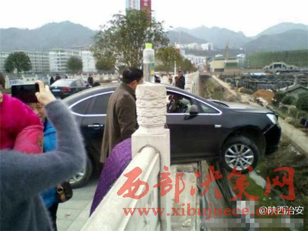 安康一男子開車撞斷橋梁護(hù)欄 車身懸空在大橋上