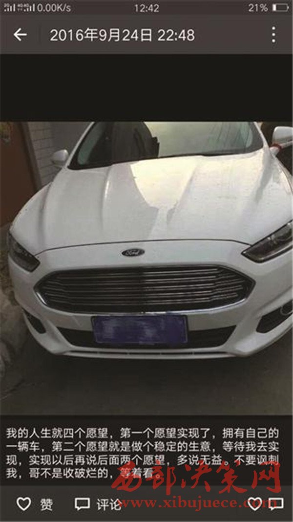 "我的人生就四個(gè)愿望,第一個(gè)愿望實(shí)現(xiàn)了,擁有自己的一輛車(chē),第二個(gè)愿望就是做個(gè)穩(wěn)定的生意,等待我去實(shí)現(xiàn),實(shí)現(xiàn)以后再說(shuō)后面的兩個(gè)愿望,多說(shuō)無(wú)益。不要諷刺我,哥不是收破爛的,等著看。"