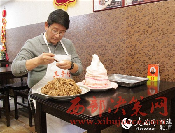 “耳聾伯”并不是招牌,它是大家口耳相傳的口碑叫出來(lái)的。林英德自己寫(xiě)了“風(fēng)雨傳承百年美食,弘揚(yáng)奉獻(xiàn)文化遺產(chǎn)”這家老字號(hào)店的對(duì)聯(lián),他覺(jué)得有義務(wù)將這份技藝一代一代傳承下去,現(xiàn)在兒子輩傳承了,孫子輩也要繼續(xù),不能遺失。