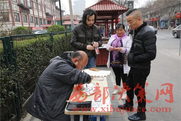 這名長(zhǎng)發(fā)先生被賈維軍的精神打動(dòng),用100元買(mǎi)了一把賈維軍的書(shū)法折扇。