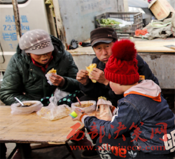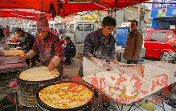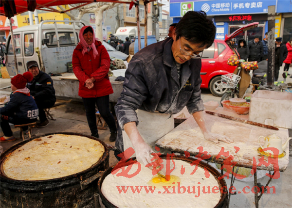 趕集餓了的鄉(xiāng)親們要一碗豆腐腦,二斤大餅,一家三口吃個飽飽的。
