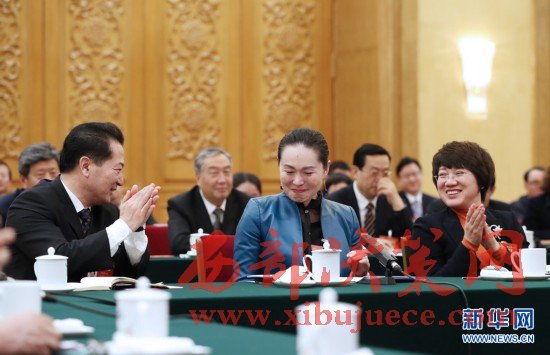 3月7日,遼寧代表團的馮玉萍代表(前中)在發(fā)言時激動不已。在兩會會場內(nèi)外,女代表、女委員、女工作人員、女記者在工作中盡職盡責,展現(xiàn)著自己的風采。