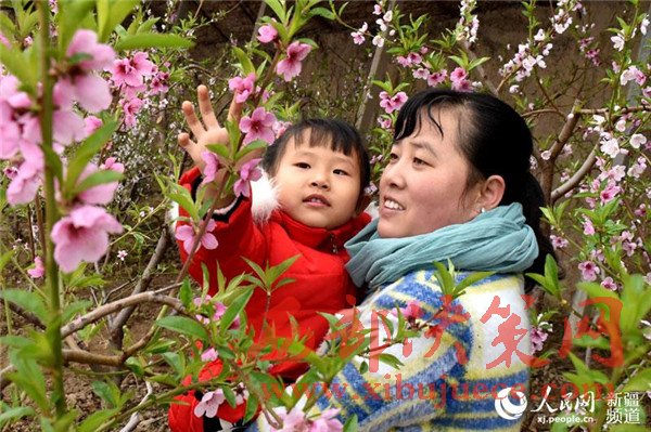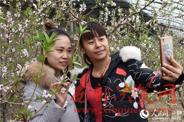 在新疆生產(chǎn)建設(shè)兵團第五師八十六團一溫室大棚里,桃花盛開,春意盎然,一游客帶著孩子正在觀賞桃花。目前,桃花迎來了盛花期,吸引了周邊游客前來賞花、拍照,感受春天的氣息。