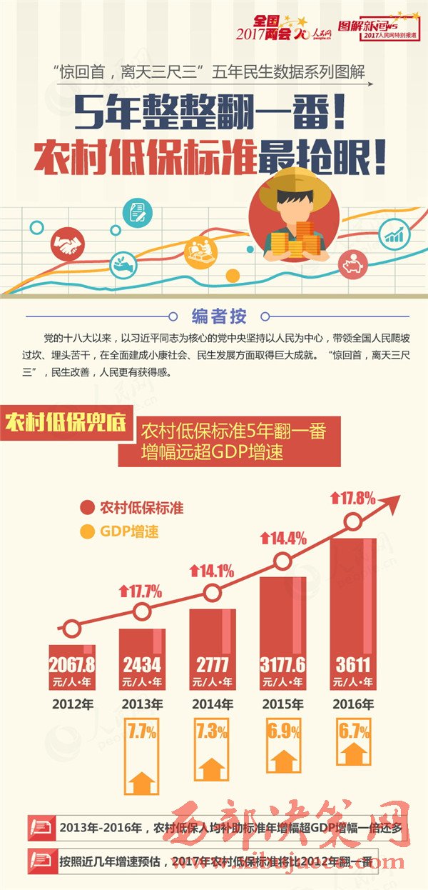 五年翻一番農(nóng)村低保增幅遠超GDP增速