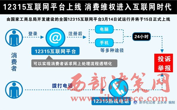 由國家工商總局開發(fā)建設(shè)的全國12315互聯(lián)網(wǎng)平臺14日試運行并將于15日正式上線,消費者在平臺上登錄注冊后可以通過電腦、手機等多種途徑24小時進(jìn)行投訴、舉報。