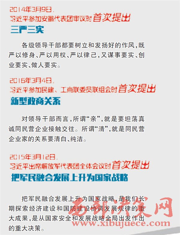 編者按:每年全國兩會期間,習近平總書記都要深入團組參加討論、審議,與代表委員們共商國是,圍繞治國理政新理念新思想新戰(zhàn)略,發(fā)表了一系列重要講話,深刻回答了在新的歷史條件下黨和國家發(fā)展的重大理論和現(xiàn)實問題,包括五大發(fā)展理念在內(nèi)的治國理念和執(zhí)政方略,內(nèi)涵不斷豐富,實踐不斷深入。