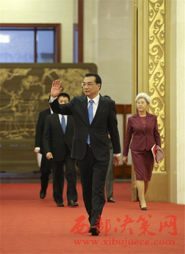 李克強(qiáng)步入人民大會(huì)堂三樓金色大廳會(huì)見(jiàn)中外記者