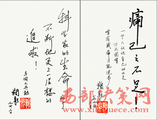 鞠躬院士在自己自傳中寫(xiě)道:我對(duì)自己的評(píng)論是無(wú)偉業(yè),點(diǎn)燃一支燭光而已??部部揽酪簧?,現(xiàn)在蠟炬已幾乎成灰了。愿我國(guó)早日成為培養(yǎng)諾貝爾獲得者的土壤,愿我們世世代代青出于藍(lán)勝于藍(lán)。