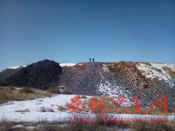 圖為柳巷煤礦廠煤矸石堆積場,現(xiàn)場新近傾倒的煤矸石裸露在外,無任何環(huán)保措施