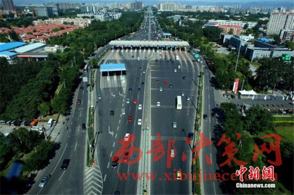 圖為從空中俯瞰京藏高速上的某收費(fèi)站。