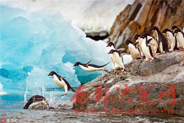 攝影師兼導(dǎo)游DaveMerron在南冰洋帶隊旅游時邂逅一群重返海洋的企鵝,這群可愛的小家伙排著隊站在巖石上,一個接一個跳進海洋“泡澡”,不遠(yuǎn)處的冰山掩映著它們張開小短翅膀起飛的身影,畫面十分美好。
