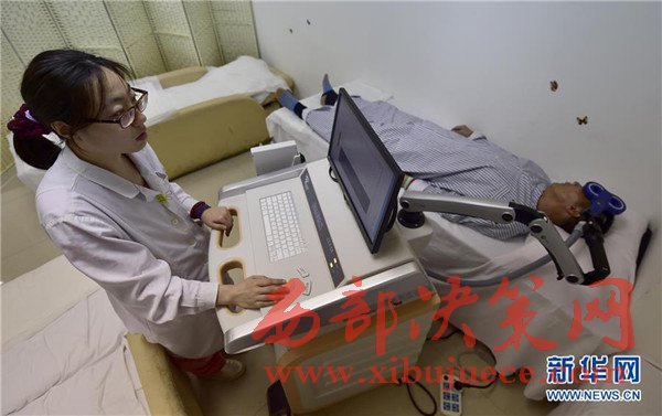 4月6日,一名抑郁癥患者(右)進(jìn)行經(jīng)顱磁刺激物理治療。