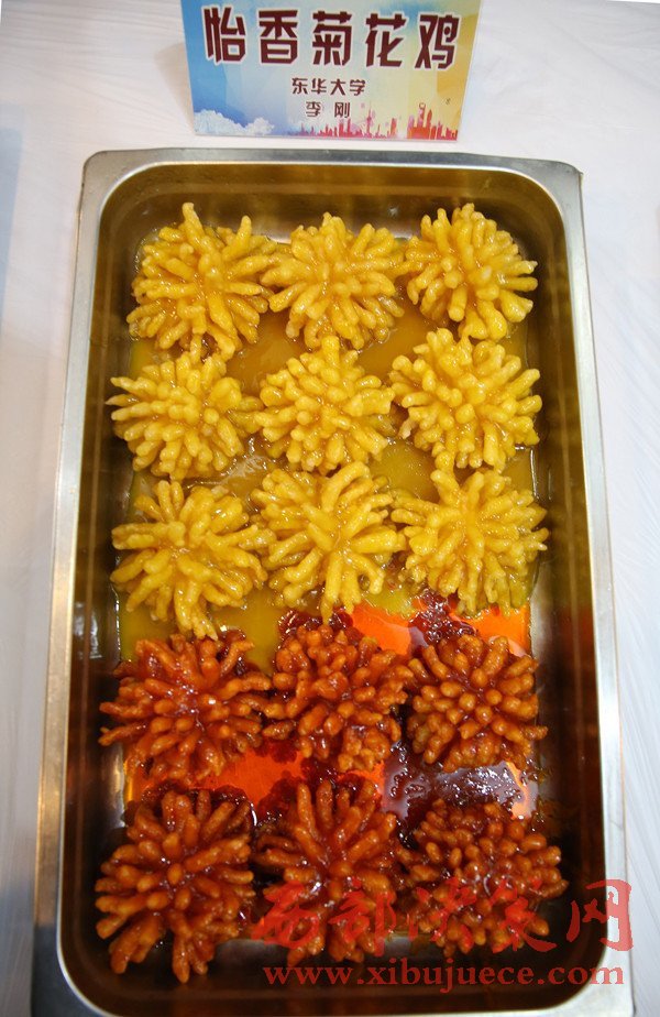“中國第九大菜系”食堂菜的菜譜里,一天之內(nèi)多出了上百個新成員。11月12日,一場上海高校食堂間的“創(chuàng)新菜”比賽在上海大學寶山校區(qū)舉行。東華大學食堂借鑒“菊花魚”,推出了一道“怡香菊花雞”,也引起了現(xiàn)場的熱議,最終斬獲禽菜類前十名。