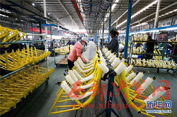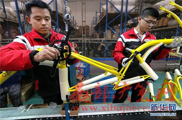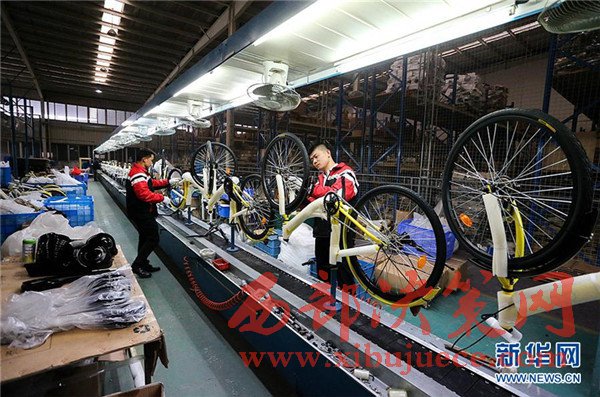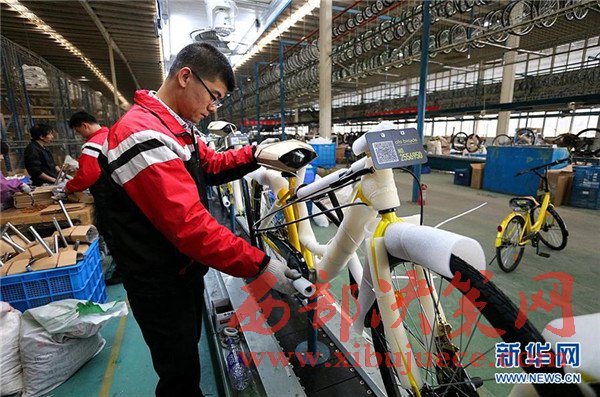 4月10日,在天津市武清區(qū)南蔡村鎮(zhèn)一家自行車生產(chǎn)企業(yè),工人在包裝共享單車車架。該企業(yè)日均下線共享單車約1500輛,目前正擴(kuò)充生產(chǎn)線,開足馬力生產(chǎn)共享單車。隨著共享單車走紅大江南北,國(guó)內(nèi)傳統(tǒng)自行車制造業(yè)迎來(lái)新的機(jī)遇。共享單車投放量的快速增加,給自行車行業(yè)注入一針強(qiáng)心劑,多地自行車企業(yè)著手調(diào)整思路、升級(jí)產(chǎn)能,為下一步發(fā)展做準(zhǔn)備。