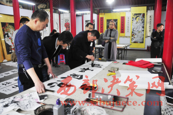 西部決策網(wǎng)-西部大開發(fā)訊(胡玉敏 通訊員 李海其 胡玉軍)4月13日下午,河北省邢臺市橋西區(qū)知聯(lián)會(huì)、邢臺市橋西區(qū)政協(xié)第三委員小組,在紫金公園聚義廳開展了書法文化交流活動(dòng)?;顒?dòng)特邀我市知名書畫家現(xiàn)場揮毫潑墨,切磋書畫技藝,創(chuàng)作作品20余幅。民盟市委副主委付曉婭,橋西區(qū)政協(xié)主席張建波、區(qū)政協(xié)副主席趙振群、王之良等領(lǐng)導(dǎo)應(yīng)邀參加。