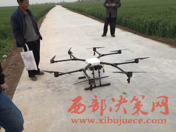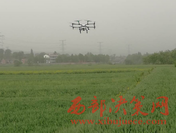 西部決策網(wǎng)-西部大開發(fā)(帥華鋒 李海瑞 通訊員 張蕾)5月5日上午9點(diǎn),微風(fēng)拂面、麥浪輕翻,6臺(tái)植保無(wú)人機(jī)正在隴縣東風(fēng)鎮(zhèn)普樂塬村的麥田上空作業(yè),飛行在距離小麥80公分處均勻地噴灑農(nóng)藥。