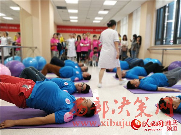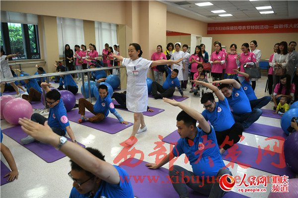 準爸爸們在現(xiàn)場一起練習孕婦瑜伽。準爸爸們在現(xiàn)場一起練習孕婦瑜伽。