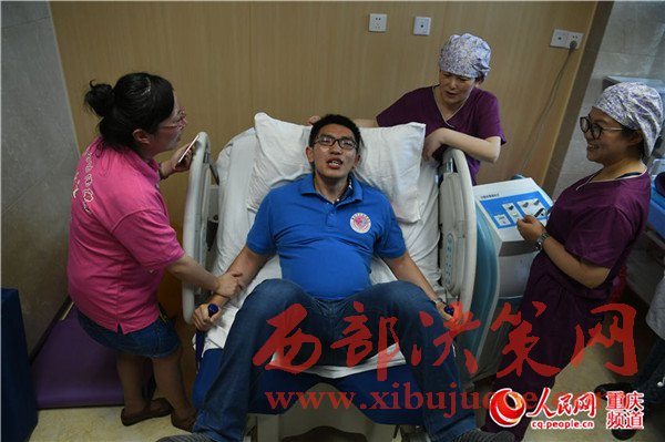 “?。√鬯览?!”“快,暫停一下,暫停一下!……生孩子到底有多痛?在母親節(jié)來臨之際,重慶婦幼保健院邀請10對家庭的準爸爸體驗分娩疼痛,用感同身受致敬母親節(jié)。在現(xiàn)場,準爸爸們通過分娩疼痛體驗儀體驗1級到10級疼痛,這個過程雖然只有兩三分鐘,他們在最初階段還故作淡定,而在疼痛高潮來臨時已是緊閉雙眼、面部扭曲、嗷嗷直叫。還有幾位準爸爸,在體驗到8級時,就已經(jīng)雙腿抽筋,不得不示意挑戰(zhàn)失敗。參加完體驗的“孕爸”們紛紛感慨女人生孩子不易,會更加感恩母親的生育之痛,更加關(guān)心疼愛老婆。