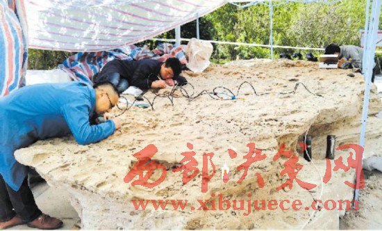 哈密科考隊(duì)隊(duì)員周紅嬌介紹,從2006年起,科考隊(duì)在哈密魔鬼城一帶搜尋早白堊紀(jì)翼龍以及其它恐龍化石,2016年10月,科考隊(duì)在魔鬼城發(fā)現(xiàn)了這個(gè)化石界的“大塊頭”。當(dāng)時(shí)我們是在一處坍塌的雅丹地貌上發(fā)現(xiàn)的,已被風(fēng)化得很嚴(yán)重,如不及時(shí)保護(hù),很可能會(huì)受到更大損害。在與哈密博物館協(xié)商后,于當(dāng)年11月16日,將其運(yùn)送到哈密博物館,今年4月份開始修復(fù)。”周紅嬌說,修復(fù)時(shí),先使用機(jī)械設(shè)備清理化石周圍的圍巖,因?yàn)轱L(fēng)化比較嚴(yán)重,表層比較脆弱,因此修復(fù)時(shí)要十分小心,最后用氣吹和手捻手動(dòng)清理。清理完畢后,會(huì)噴涂一層保護(hù)膠,用來保護(hù)化石。